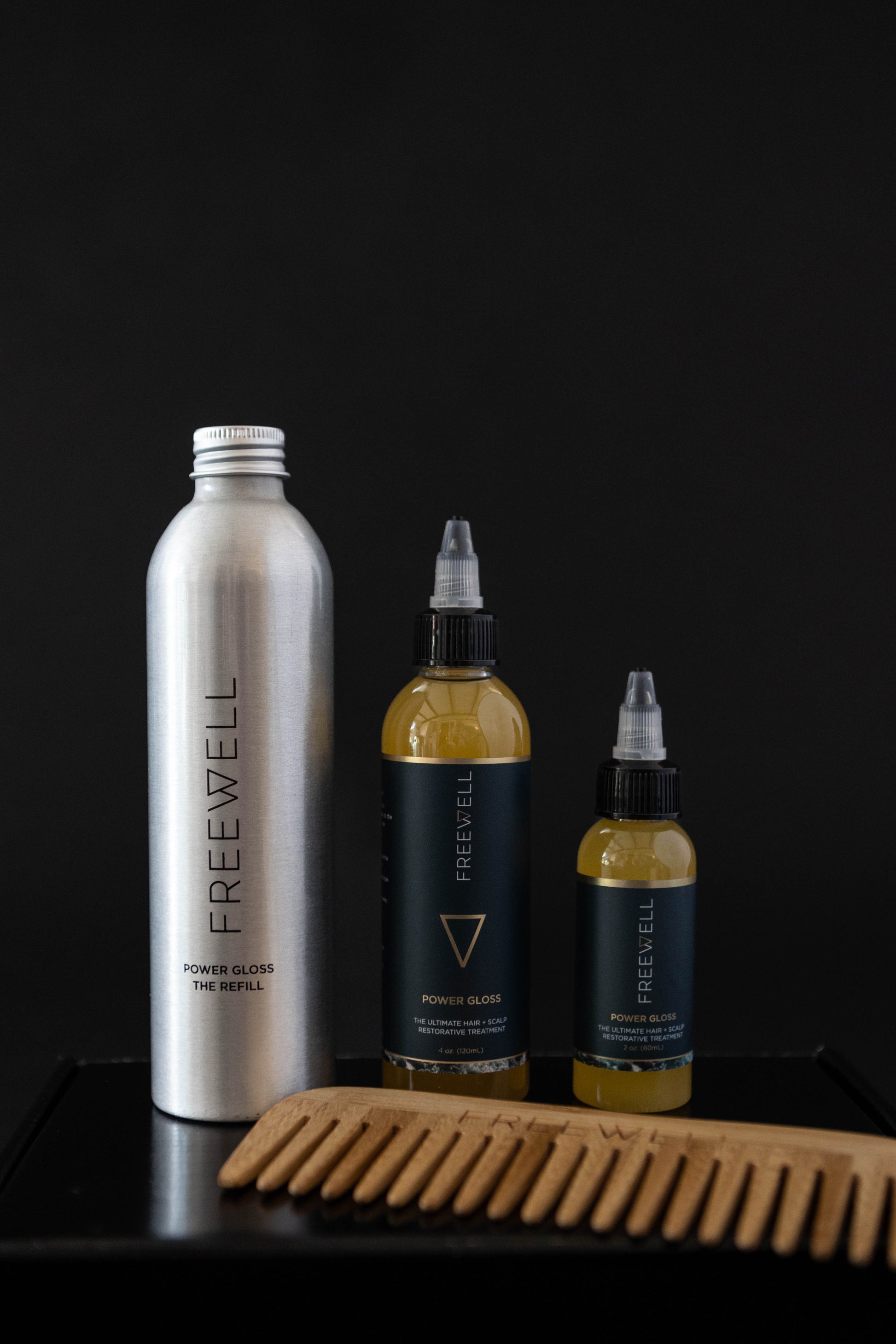 Get The Ultimate Kit and set up for success on your healthy hair journey. In this kit, you will be equipped with our standard 4oz bottle, a travel size to take wherever you go, and our 8 oz Aluminum Refill to refill your 4 oz or Travel Size, plus our Sustainable Bamboo Comb.